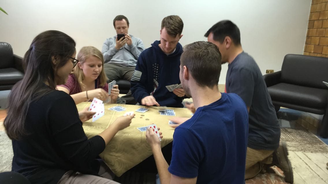Thursday, Day 16, we had our final exams. After that I hung out with some people at American Way and played cards in the beautiful weather. We had one more late beach day. Some of the guys brought their swim trunks and security let them swim.
