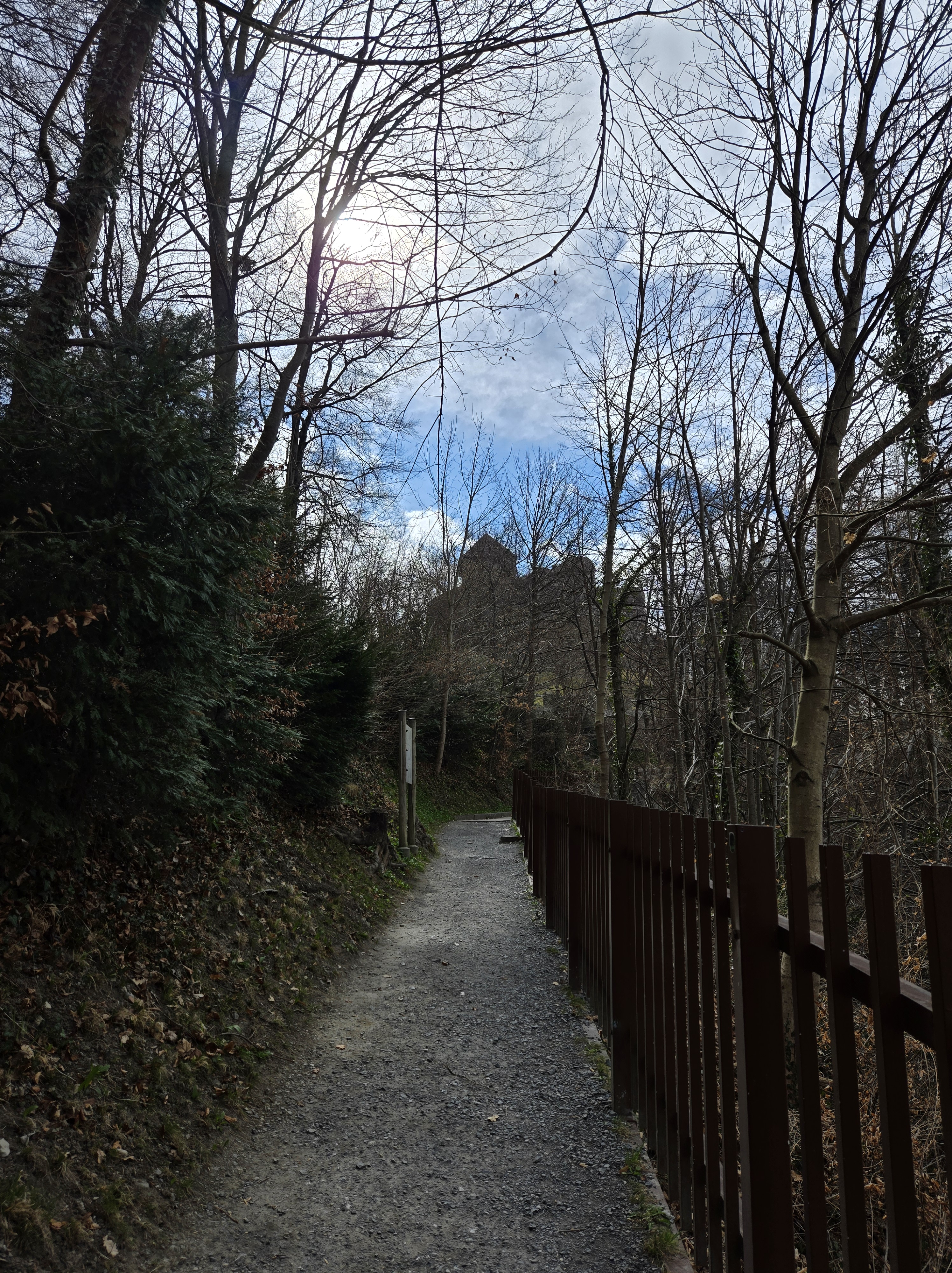 In the morning we took a train and a bus to get to Vaduz, Liechtenstein from Luzern, Switzerland. We really liked Vaduz. The area we were staying in was very cute. We were again able to get into our airbnb early. Most places were closed today because it was a Monday, so we went to The Coop and got sandwiches. After lunch we went to the tourism office and got souvenirs. We learned of a trail that takes you up to the castle. The trail basically went straight up the cliff side. The back side of the castle looks much more castle-like than the front side.