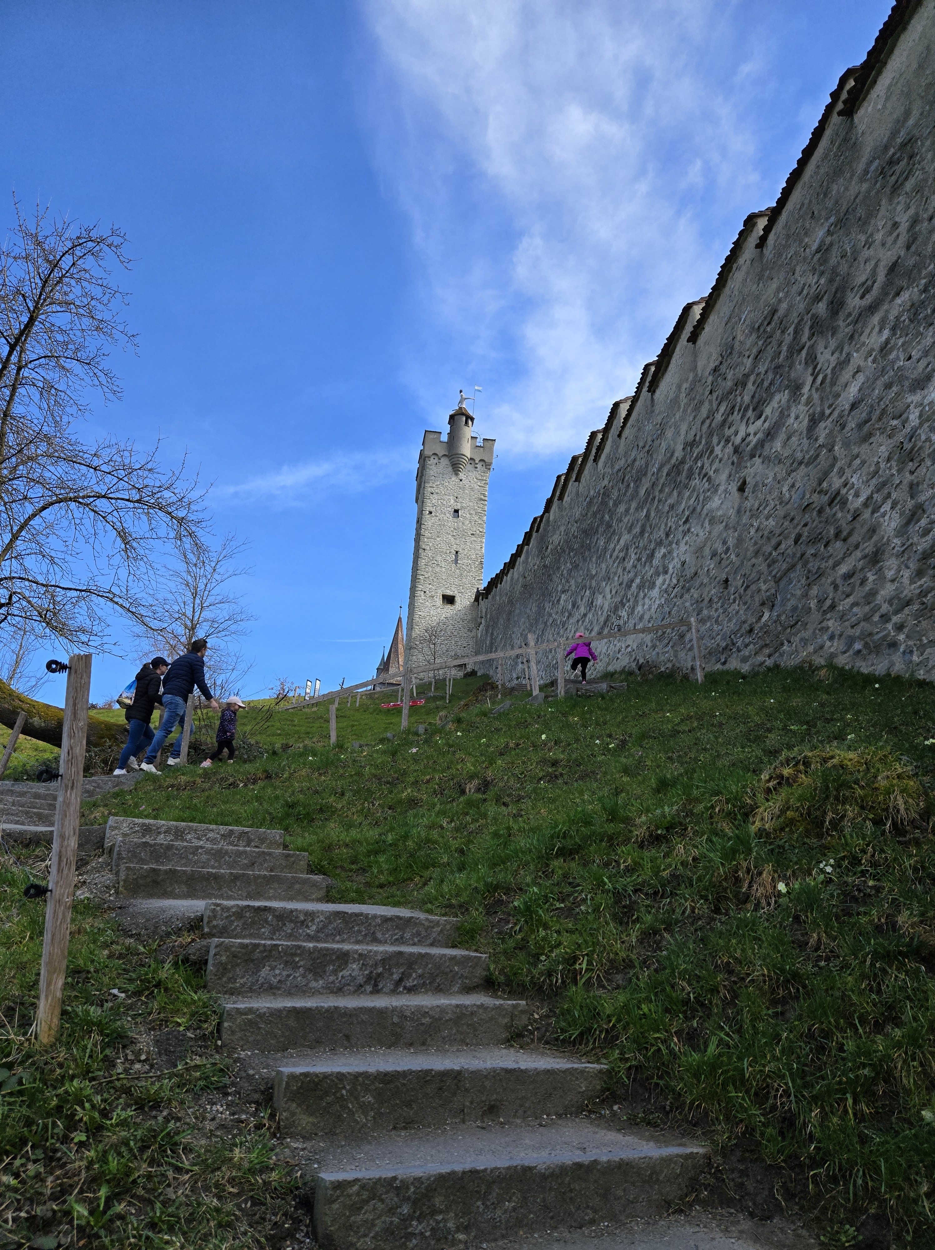 The next morning we took a train and a bus to get to Vaduz, Liechtenstein. We really liked Vaduz. The area we were staying in was very cute. We were again able to get into our airbnb early. Most places were closed today because it was a Monday, so we went to The Coop and got sandwiches. After lunch we went to the tourism office and got souvenirs. We learned of a trail that takes you up to the castle. The trail basically went straight up the cliff side. The back side of the castle looks much more castle-like than the front side.