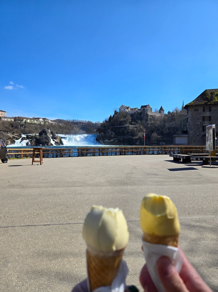 The next morning we headed up the Zurich and dropped our bags off at our last hotel for the trip. We were very early and our hotel operated as a cafe during the day. They were able to hold our bags for us, though, so that was good. We went back to Zurich main station and took a train up to Europe’s Largest Waterfalls, Rheinfalls.