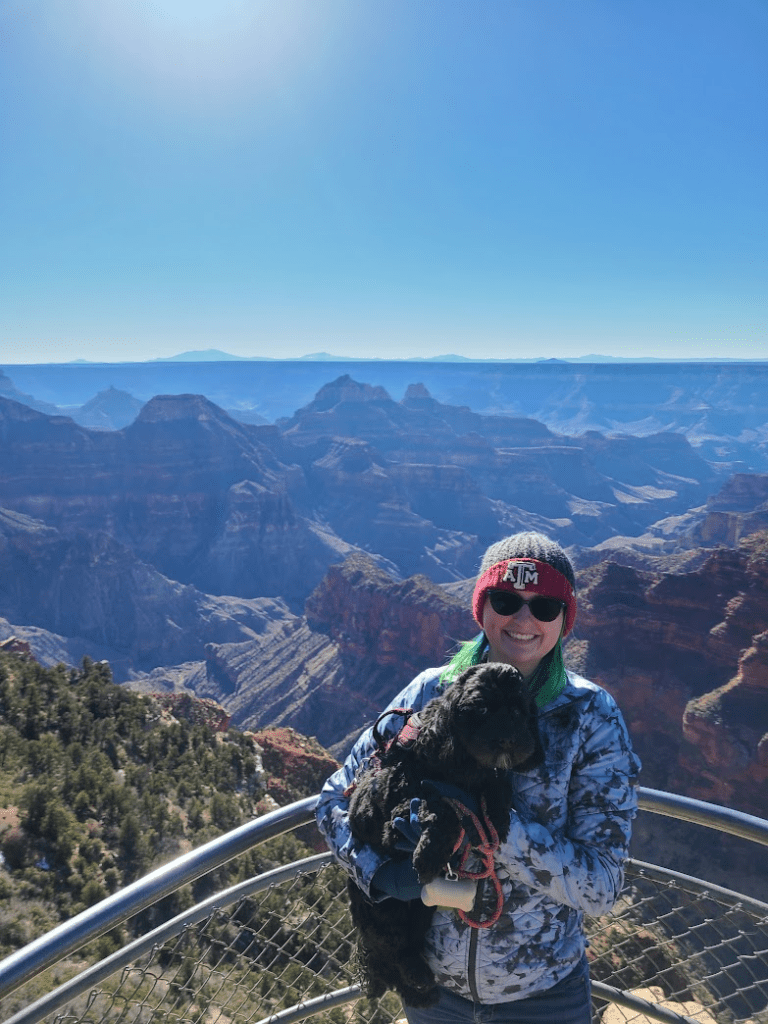 But luckily it was a beautiful day and the snow was melted off the road! I finally made it to the Grand Canyon! The North Rim was actually closed for the winter, but that just meant I could take the dog on the trails that aren’t dog friendly. Yeah, the dog does, in fact, look scared. She just kinda looks like that sometimes….totally not the wobbly path and the sheer drop off. It’s fine. We took a bunch of fun pictures, had some lunch, then continued on with the trip. [I’ll add a link here once I actually write about the rest of the trip]